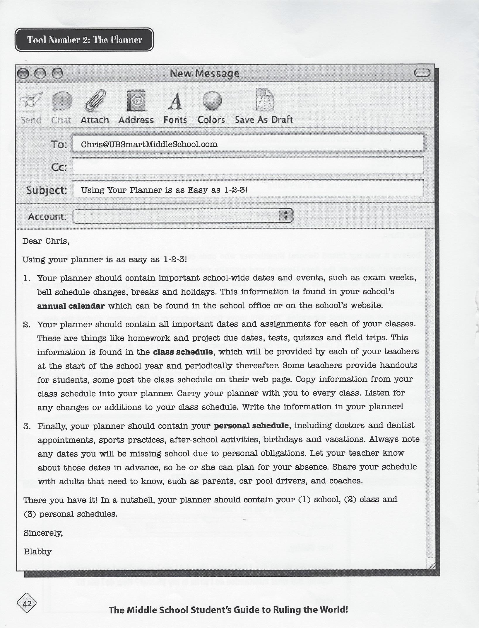 (1) Students must choose a calendaring system (Planner): some options are (1) buy a calendar like at the Dollar Store, (2) print out a calendar, or (3) turn the blue Assignment Book into an actual calendaring system (planner) by writing in all the dates for the rest of the school year.